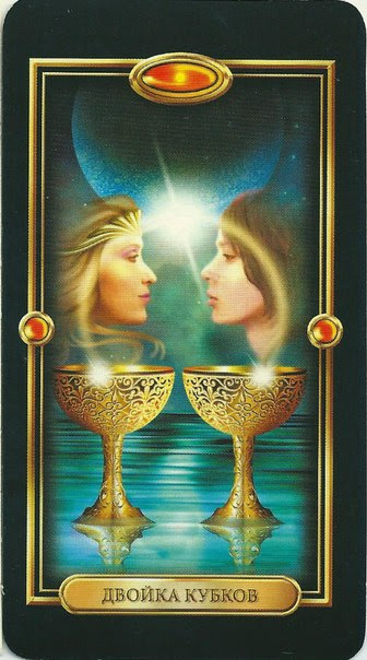 Значение карт:- Двойка Кубков — карта соединения, партнерства и взаимной симпатии. Она говорит о зарождении или укреплении важных союзов. Это может быть романтические отношения, глубокая дружба, деловое партнерство или примирение. Главное — гармония, взаимное уважение и эмоциональный обмен. Также речь может идти о выборе, который вам предстоит сделать.